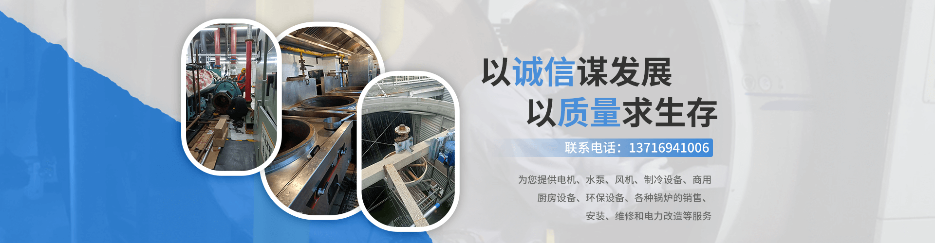 京南永盛(北京)环保工程有限公司专业为您提供电机、水泵、风机、制冷设备、商用厨房设备、环保设备、各种锅炉的销售、安装、维修和电力改造等服务,我公司本着“以诚信谋发展”“以质量求生存”“争创首都精品”和“敢于创新的精神”立足于北京和各大城市,深受广大客户的信赖和支持,我公司可承接各大企业(工厂.医院.市政.电厂.商场等)设备的销售、安装、维修和保养服务,以不断创新的技术严格要求产品的质量,周到的服务,本着“24”小时随叫随到的服务方针,深受广大客户的认可和支持。欢迎您到我公司洽谈业务并建立长期友好的合作。